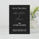 Un divertido e informal salva la tarjeta de cita con una foto clásica en blanco y negro de la pareja feliz en la parte de atrás. Para editar el texto y cambiar la foto haga clic en el botón de personalización.