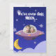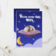 Este gracioso espacio temático, salvo la fecha, muestra tu propia foto dentro de una linda nave espacial que sobrevolaba la luna en un cielo nocturno con tipografía tipo galaxia que dice, "Estamos sobre la luna..." ¡Una forma divertida para que la pareja recién contratada llame la atención de sus amigos y familia para anunciar su compromiso y boda!