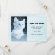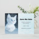 Guarda la tarjeta de cita con una adorable fotografía de un gatito blanco de pelo corto con ojos azules brillantes. Mirando hacia la distancia. Las patas se cruzan a la manera típica de gatos gatitos.