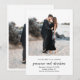 La boda fotográfica moderna permite guardar la tarjeta de fecha con un diseño mínimo en blanco y negro con tu foto favorita. A continuación se muestran los detalles del evento en una combinación de tipos de letra sans serif simples y un guión elegante. Esta moda guardar la fecha es genial para cualquier estilo de boda.