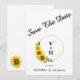 Una elegante invitación de boda con un marco dorado de girasoles alegres.