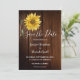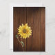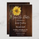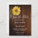 Girasol rústico en madera de granero, tarjeta de aviso de boda campestre.
