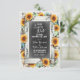 ¡Las perfectas Save The Dates rústicas campestres para la temporada de otoño! La madera de granero desgastada y la pizarra están acentuadas por girasoles festivos y calabazas de cosecha en estilo acuarela. Tema de boda especial y único para envíos de octubre y noviembre.