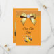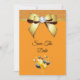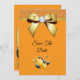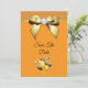 Beautiful elegant any age birthday party Save The Date for women, with printed images of a glamourous gold bow with a rhinestone diamond gem in the centre and a gold ribbon on a sparkly orange glitter, and plain orange background, with a bunch of gold and black balloons surrounded by stars. The reverse has a pretty gold pearl mat to encase your event details with 2 glasses of champagne with gold bows at the bottom all printed on a plain orange background. All text is fully customisable to meet your requirements. Text colour can be changed. If you would like help to customise your product or would like matching products please contact me through my store and i will be very happy to help you. Pearl mat by ©Hazel Kinvig-Paul www.design-a-dream.co.uk