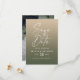 Simple Ombre Gradiente Oro Y Boda Verde Forestal Guardar Las Tarjetas De Fecha. Este diseño moderno y clásico es minimalista y elegante, con un sencillo degradado oscuro y un hermoso texto de escritura con firma caligráfica. Mostrado en la paleta de colores Gold & Forest Green Boda, con Monstera Dark Hunter Green y Oro amarillo pálido claro. También incluye una fotografía opcional de una pareja de personalizados en la parte trasera. O simplemente ocultar la capa para tener un fondo degradado en su lugar. Para ver más, busque las colecciones de bodas 2022 de Moda Paperie para ver todos los diseños de moda y colores bodas para este año.