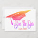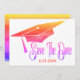 La bella y simple graduación moderna salva la tarjeta de cita para enviarla a la familia y amigos. Cuenta con un tapón de graduación con un aspecto acuático de color arcoiris. Maravillosa tarjeta moderna y simple para guardar una fecha para una graduación.