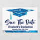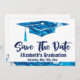 La bella y simple graduación moderna salva la tarjeta de cita para enviarla a la familia y amigos. La decoración es de mármol azul y blanco. Maravillosa tarjeta para guardar una cita para una graduación.