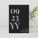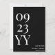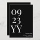 Haga una declaración en negrita con nuestra Gran Negrita Fecha en Blanco y Negro Guardar la Fecha. Este atractivo diseño presenta una gran pantalla impactante de la fecha de su boda en un llamativo esquema de color blanco y negro. La sencillez y el contraste del diseño crean un estilo moderno y sofisticado que cautivará a los clientes. La impresión de alta calidad garantiza detalles nítidos y claros, convirtiendo la fecha en el punto focal de la tarjeta. Con opciones de personalizable para sus nombres y detalles adicionales, esto permite guardar la tarjeta de fecha para que pueda añadir un toque personalizado a sus invitaciones bodas. Fije el tono para su gran día con nuestra Gran Negra Negra y Blanca Fecha Salvar la Fecha, haciendo una impresión duradera y construyendo anticipación entre sus seres queridos. Prepárate para embarcarte en tu viaje boda con estilo y estilo. Parte de la colección de Bodas blancos y negros.