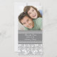 La boda permite guardar las tarjetas de fotos de fecha en gris y blanco elegante y moderno con un romántico patrón de damasco vintage floral. Disponible en franqueo coincidente y muchos otros productos para su boda.