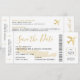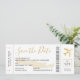 Embarque de pases con pasaje aéreo Salven la tarjeta de invitación de cita para una boda de destino en Creta, Grecia, con un romántico icono del avión y un desvanecido fondo de mapa de islas de oro con modernos y elegantes tipos de letra y de lado con información de viajes y alojamiento para que los huéspedes empiecen a planificar su viaje para celebrar su matrimonio en medio de unas vacaciones. Uno de los muchos temas de viajes ahorra las fechas e invitaciones creadas después de trabajar directamente con parejas creativas y aventureras que han viajado juntos por el mundo o se han encontrado mientras trabajan en la industria de viajes. Póngase en contacto directamente con el Diseñador Zazzle de destino de uva de papel a través de la charla de Zazzle con las ideas que tiene para personalizar la plantilla con los detalles de su boda en mente.