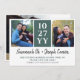 Doble cara guardar la tarjeta de fecha con dos fotos en un lado y una gran foto en el otro. Agregue su fecha de boda en letras blancas en negrita contra un fondo verde. Sus nombres en un guión de pincel negro encantador.