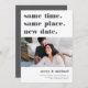 ¿Necesitas posponer o reprogramar tu boda? Haz que los invitados se enteren con estas tarjetas modernas y ligeras en blanco con letras suaves en gris. El diseño divertido y astuto basado en tipografía presenta "mismo lugar, misma hora, nueva fecha" en la parte superior con la nueva fecha de la boda y detalles debajo. Personaliza con una foto y agrega detalles adicionales en el reverso.