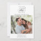 Anuncie su próxima celebración con esta tarjeta de boda de fechas guardando una elegante plantilla de fotos y un elegante guión de caligrafía. El diseño moderno de la tipografía en un estilo atemporal blanco y negro exuda la sofisticación minimalista. Un código QR proporciona acceso sin problemas a su sitio web boda en línea, combinando comodidad con elegancia. Con un texto clásico y una disposición minimalista y elegante, este diseño es perfecto para las parejas que buscan una manera sofisticada y contemporánea de compartir su historia de amor.
