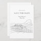 Diseño simple de boda salve la tarjeta de fecha inspirada en las colinas toscanas onduladas y los cipreses