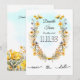 Esta tarjeta "Save the Date" presenta una estética floral amarilla delicada y romántica. El diseño se centra en una corona floral compuesta por flores silvestres blandas de color amarillo y violeta con vegetación, creando un ambiente acogedor e inspirado en la naturaleza. El fondo está sutilmente sombreado, con un lavabo de color azul claro y acuarela que aporta un ambiente suave y relajante a la carta. La tipografía es elegante y formal, con los nombres de la pareja en un elegante tipo de letra de guión, mientras que la fecha está en un audaz y moderno tipo de letra serif, creando un elegante contraste. El texto "save the date" (guardar la fecha) está escrito en un estilo caprichoso, con letras a mano, añadiendo a la estética casual, pero refinada. En general, la tarjeta evoca un encanto rústico y una elegancia intemporal, perfecta para las parejas que desean una mezcla de belleza natural y estilo boda clásico.
