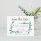 Personalizable Guardar los anuncios de fecha con marco floral floral azul centrado moderno con campos de texto en fuentes modernas.
