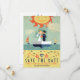 Inspirado en pósters de viaje vintage, este divertido guardar la fecha es una excelente manera de difundir la gran noticia sobre su próxima boda de destino. Para cambiar el color de piel o el color de pelo de la pareja ilustrada, por favor contacte al diseñador con su solicitud.