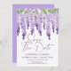 Salven la cita Wisteria Boda Lilac Save The Date Invitation incluye elegantes flores de glicinia en lila suave, lavanda y púrpura con hojas verdes en un fondo blanco con la información Save The Date debajo. Personalice editando el texto en los cuadros de texto proporcionados. Diseñado por ©Evco Studio www.zazzle.com/store/evcostudio