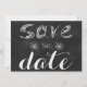 Una tarjeta "Save the Date" en un fondo de pizarra para la gente que gusta un poco de ventaja y un poco de nostalgia combinada. Sencillo y hasta el punto. También es ideal para el profesor que ata el nudo.