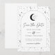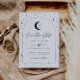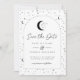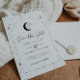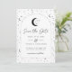 Una tarjeta para guardar la fecha con tema de luna y estrellas celestiales en una paleta de colores monocroma. ¡Personaliza el color del patrón de estrellas, fondo, relleno del arco y elemento de luna!