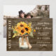 Anuncia tu boda en estilo rústico y chic con esta tarjeta de guardar la fecha de girasoles. Con un ramo de girasoles pintados a la acuarela en un tarro de mason, sobre un fondo de madera de granero, este diseño es perfecto para bodas de otoño, granja o al aire libre. Personaliza con tus nombres, fecha de la boda y una foto favorita en la parte posterior para una primera impresión hermosa.