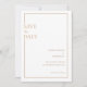 Plantilla de anuncio de tarjeta de "Save The Date" islámica musulmana que se puede utilizar para anunciar la boda de la pareja o la ceremonia de compromiso. Tarjeta de color marfil blanco básico con una fuente de escritura dorada clásica y limpia en la parte superior. Mínimo. Moderno. Hay un delicado marco dorado con las palabras "Save The Date" escritas en el lado izquierdo y los nombres de la novia y el novio escritos en letras mayúsculas, fecha y el resto de la información escrita en el lado derecho. Puede personalizar toda la información y editar el tipo, estilo y tamaño de fuente con la herramienta de diseño. Papelería de boda. Her Line For Design Studio de Ayesha.