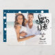 Esta tarjeta moderna de guardar la fecha con foto y escritura decorativa presenta su foto y una nota de guardar la fecha encima de sus nombres, fecha y lugar. El reverso tiene lunares dispersos. Puede personalizar el color del fondo según sea necesario. Diseñado por Thisisnotme