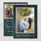 Anuncia la fecha de tu boda a amigos y familiares con este Guardar la fecha de foto rústica simple turquesa. El diseño del anuncio presenta un rico fondo de madera y espacios para tres fotos de la feliz pareja completado con un diseño de texto moderno.