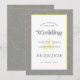 Nuestra tarjeta de guardar la fecha de la boda de moda presenta un patrón de hojas abstractas modernas delineadas en amarillo iluminado sobre un fondo gris definitivo. La caligrafía y el guion en negrita están en gris y amarillo sobre un fondo blanco. Una plantilla de moda complementa el diseño de caligrafía único. Un guion elegante en gris definitivo está organizado en un borde amarillo coordinado sobre un fondo blanco. Una plantilla moderna para la fecha y el año complementa el diseño de caligrafía único y los nombres y apellidos de la pareja comprometida. [NOTA: La visualización de la fecha de la boda como se muestra, utiliza la barra vertical o línea que se puede encontrar encima de la \ en un teclado o en su dispositivo inteligente con los caracteres especiales.] El reverso de la tarjeta repite el patrón amarillo y gris. Asegúrese de ver el enlace de la colección en esta página para ver todos los artículos coincidentes. Por favor, dirija las preguntas o solicitudes personalizadas a invitationsuites