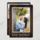 Anuncie la fecha de su boda a amigos y familiares con este simple y elegante Guardar la fecha de la foto rústica simple. El diseño del anuncio presenta un rico fondo de madera y espacios para tres fotos de la feliz pareja completadas con un diseño de texto moderno.