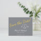 Guarda la fecha para un boda en amarillo y gris. Las palabras, Save the Date (Guardar la fecha), están en amarillo sobre un fondo gris y el resto del tipo de letra está en blanco. La fecha boda está rodeada de una flecha en forma de corazón. Puede editar las fuentes y los colores. Si lo desea, puede agregar una foto a la parte posterior y eliminar el color de fondo y la imagen de las luces. Esto coincide con las tarjetas de la colección de mi tienda.