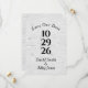 Fecha de boda y nombres de pareja comprometida en un árbol de abedul texturado fondo para Save the Date. El texto es editable.