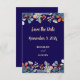 Flores azules, óxido y un toque de plata sobre un fondo azul marino.