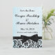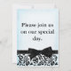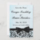 Un elegante y formal salven el anuncio de la fecha de mi serie en negro y azul. Fondo azul en polvo con cinta negra y corbata acompañada de encaje negro.