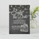 Guardar Las Plantillas De La Tarjeta De Invitación De Boda De Fecha - Elegante Guardar El Guión De Letras De Fecha Y Las Luces De La Cadena De Mason De Vintage Con Fondo De Cartón Negro Grunge. Un diseño perfecto para tu gran día. ¡Todo el estilo de texto, colores, tamaños se pueden modificar para adaptarlo a sus necesidades!
