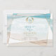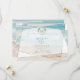 Guardar la fecha de la boda | Boda de playa geométrica con monograma moderno | Una vuelta de tuerca moderna en las invitaciones de boda de playa: diseño de boda único para theBarefootBride™ por ©WhimsicalArtwork™ que presenta una forma geométrica de estilo terrario descentrado con transparencias variables en las facetas para permitir que el fondo de la playa del océano tropical se muestre en una variedad de formas e intensidades. Un enfoque juguetón de la tipografía en el texto - con las iniciales del nombre de la novia y el novio rodeadas de una corona de laurel en la parte superior - en dos colores (turquesa y dorado) - seguido de fuentes serifas coordinadas en verde grisáceo apagado (tomado del océano) turquesa (tomado de las olas del océano en el fondo) y letras doradas. Los detalles de la boda, limpios y simples, solo en el anverso de la invitación; un diseño coordinado de playa tropical en el reverso. Todo el