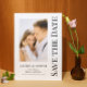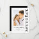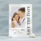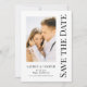 Guardar la fecha negro blanco elegante escritura boda moderna Tarjetas presenta un fondo blanco con tu foto personalizada. Personaliza con tu texto editando el texto en los cuadros de texto proporcionados. Diseñado para ti por ©Evco Studio www.zazzle.com/store/evcostudio
