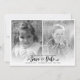 Esta encantadora invitación de boda para guardar la fecha incluye fotos antiguas de la pareja y su texto personalizado. Utilice el formulario de plantilla para agregar su información. Cambie la fuente y el color de fondo utilizando la función Personalizar.