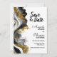 Informe a sus amigos y seres queridos de su futura boda con este elegante y moderno guardar la fecha de mármol de ágata negro y dorado. (No se ha utilizado purpurina real en esta invitación.)