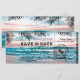 ¡Prepárate para la boda de verano de tus sueños! A medida que suben las temperaturas y se acerca la temporada de playa, más y más parejas optan por la clásica boda en un destino turístico. Con un pasaje de embarque para guardar la fecha de destino de playa, las parejas pueden asegurarse de que sus invitados reciban su invitación con estilo. Estos boletos de pasaje de embarque para guardar la fecha de destino de playa presentan un entorno de playa de palmeras tropicales, luces centelleantes y una plantilla de texto moderna.