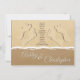 Personaliza corazones de piña para guardar la fecha con tarjetas superpuestas de vegetación tropical en tonos arenosos. Ideal para una boda de playa tropical.