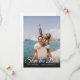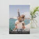 Esta simple tarjeta de guardar la fecha con foto con guión moderno elegante presenta su foto especial superpuesta con un guión para guardar la fecha encima de sus nombres, fecha y lugar en texto blanco. El reverso tiene detalles adicionales para guardar la fecha, incluyendo la dirección de su sitio web de boda. Diseñado por Thisisnotme©