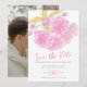 Guarde la tarjeta botánica boda de color rosa de la flor de color rosa con su propia foto al revés. Infórmele a sus invitados el día de su boda con estas bellas tarjetas florales primaverales. Hay otros elementos coincidentes disponibles o se pueden crear por petición. Pintura de acuarela de mano original con tratamiento y diseño de color por Sarah Trett para www.mylittleedenweddings.com