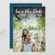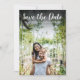 Esta moderna foto de guión guarda la tarjeta de fecha y muestra su foto especial con un guión que guarda la fecha por encima de sus nombres, fecha y lugar en texto blanco. Puedes personalizar al revés con tu color favorito o añadir detalles adicionales. Diseñado por Thisisnotme©