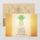 Corazones de piña personalizados están en todas partes guardando las tarjetas de fecha superpuestas al atardecer tropical.