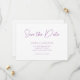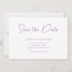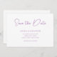 Boda minimalista guardar el texto de fecha en una caligrafía de escritura elegante y moderna de estilo manuscrito. Los nombres de la pareja y otra información sobre eventos bodas presentan un tipo de letra moderno que se utiliza tanto con las mayúsculas como con las minúsculas. Cambie el fondo blanco sólido o el color de fuente lavanda para que coincida con la paleta de color boda.