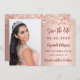 Un moderno y elegante Save the Date para una fiesta de cumpleaños número 18 (o cualquier edad). fondo de degradado de oro Subió, decorado con un confetti de oro subió. Personalice y agregue una foto, fecha y nombre. El texto: Save the Date se escribe con un guión de estilo con letras a mano.