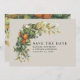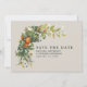 Guión elegante boda moderna rústico cítrico naranja botánico guardar la tarjeta de fecha. Parte de una colección moderna.