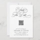 Este guión romántico para guardar la tarjeta de anuncio de fecha es perfecto para un simple boda. El diseño minimalista en blanco y negro incluye una elegante y romántica caligrafía con un código QR. Para una personalización más avanzada de este diseño, haga clic en el BOTÓN HERRAMIENTA DE DISEÑO AZUL de arriba.