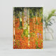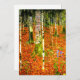 Tarjeta con la pintura de la casa de campo con árboles de Birch (1903) de Gustav Klimt. Un paisaje otoñal de hojas naranjas en un bosque de abedules con hermosas flores azules. Un regalo maravilloso para los amantes del arte Art Nouveau y austriaco.